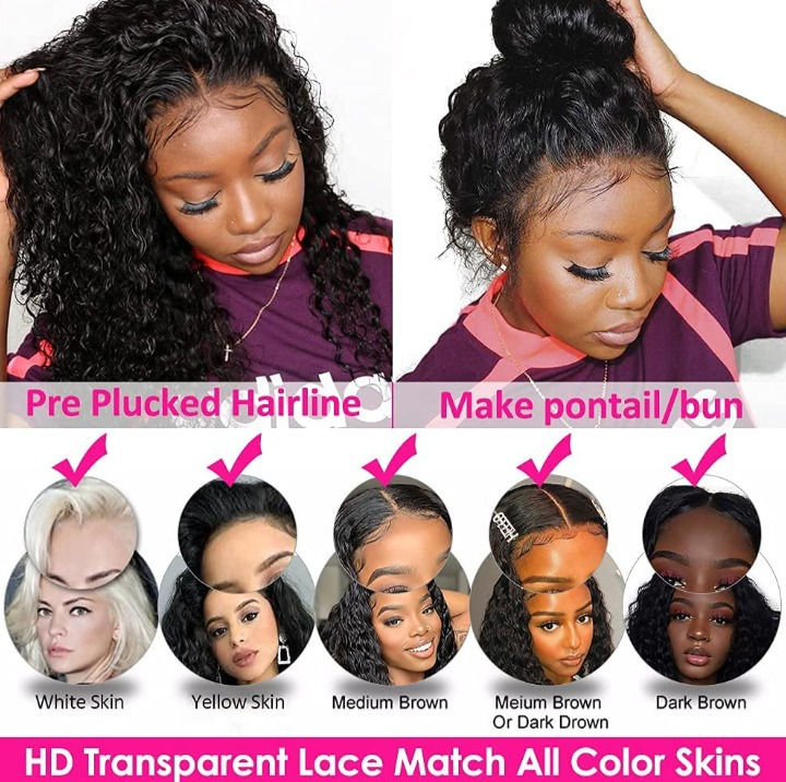 Deep Wave HD Transparent Lace Front Human Hair Pre Plucked w/Baby Hair Wigs